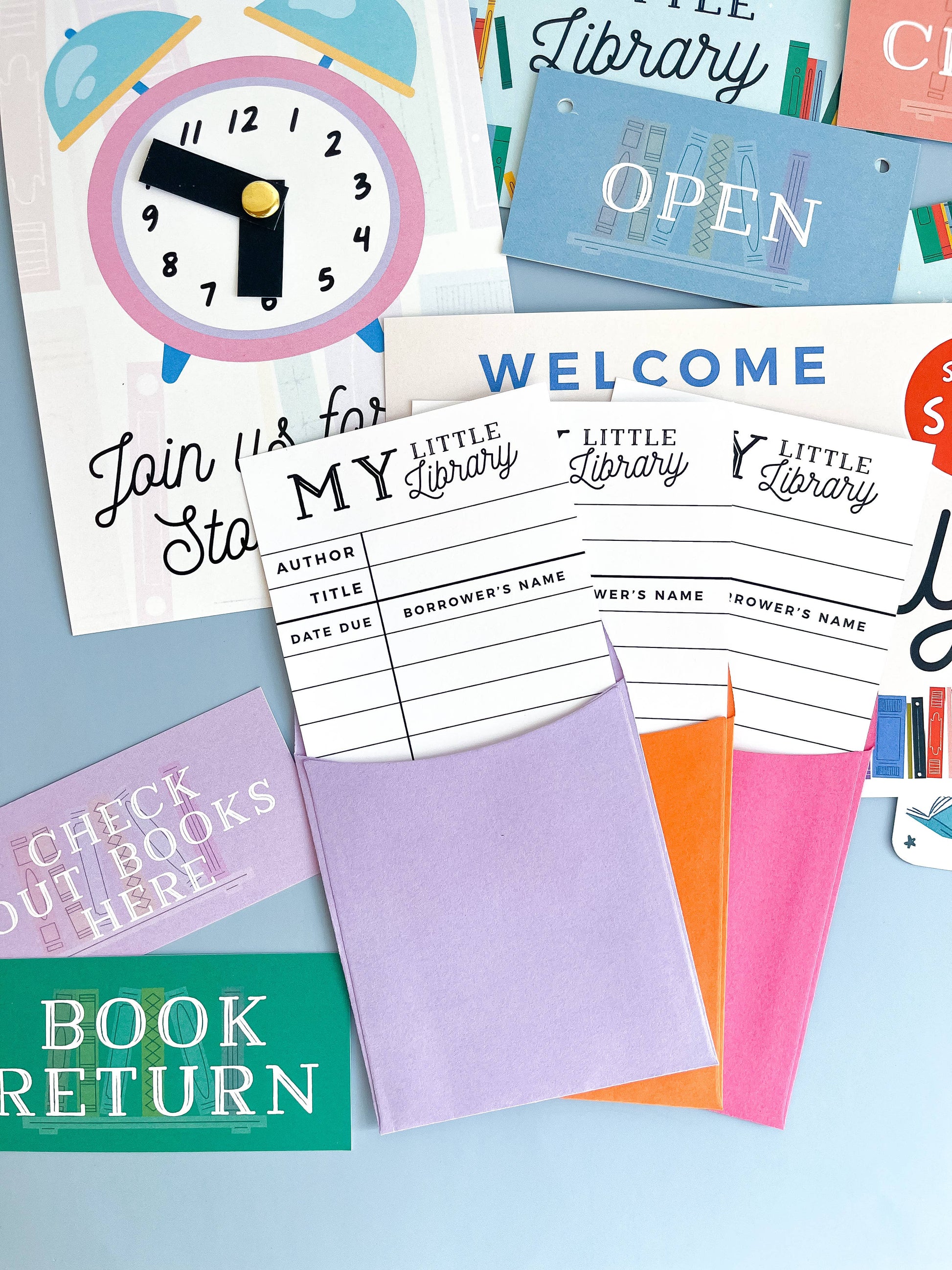 This hands-on activity set lets kids build, design, and “run” their very own library — complete with check-out cards, signage, and even a story time clock!